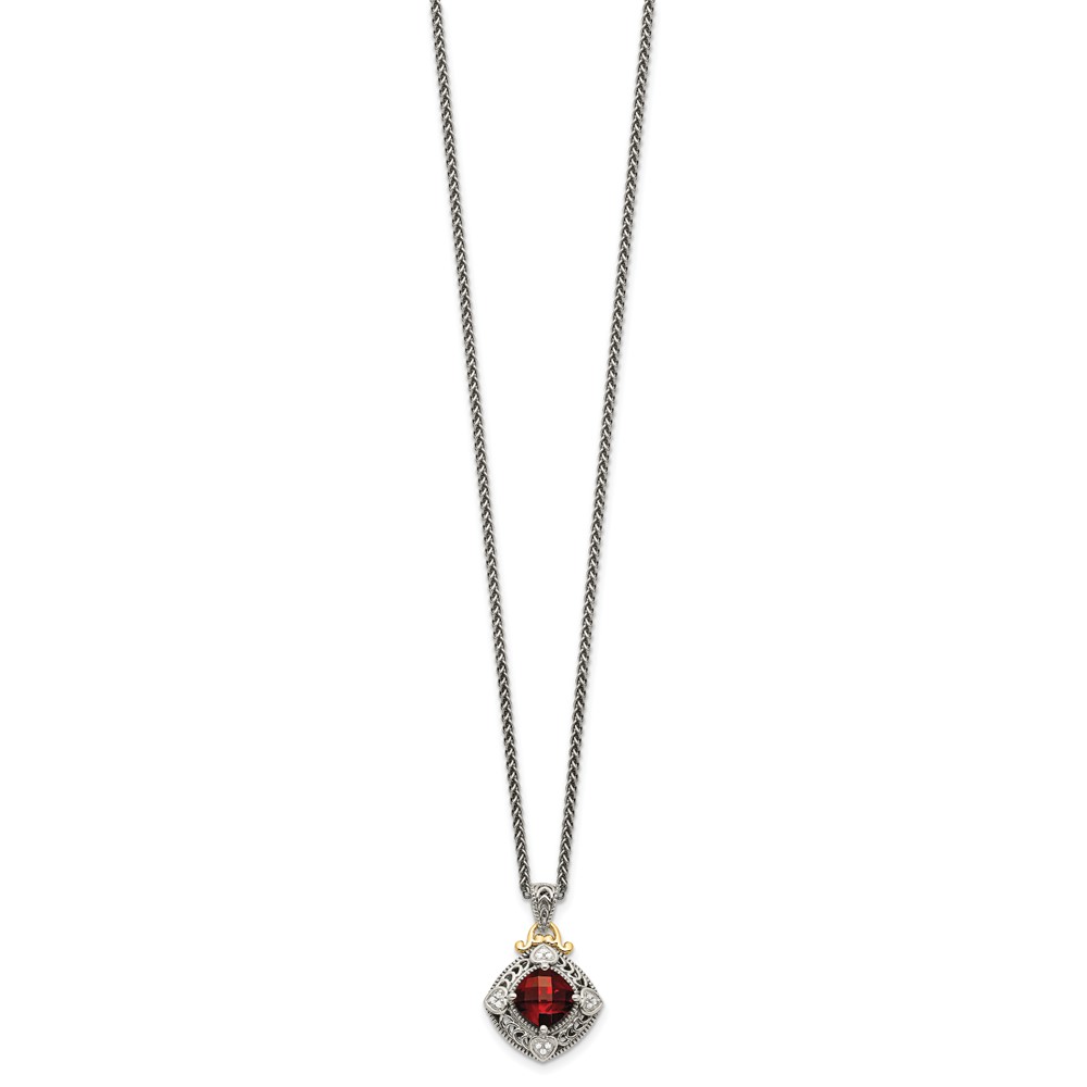 Shey Couture Sterling Silver with 14K Accent 18 Inch Antiqued Diamond and Cushion Checkerboard Garnet Necklace