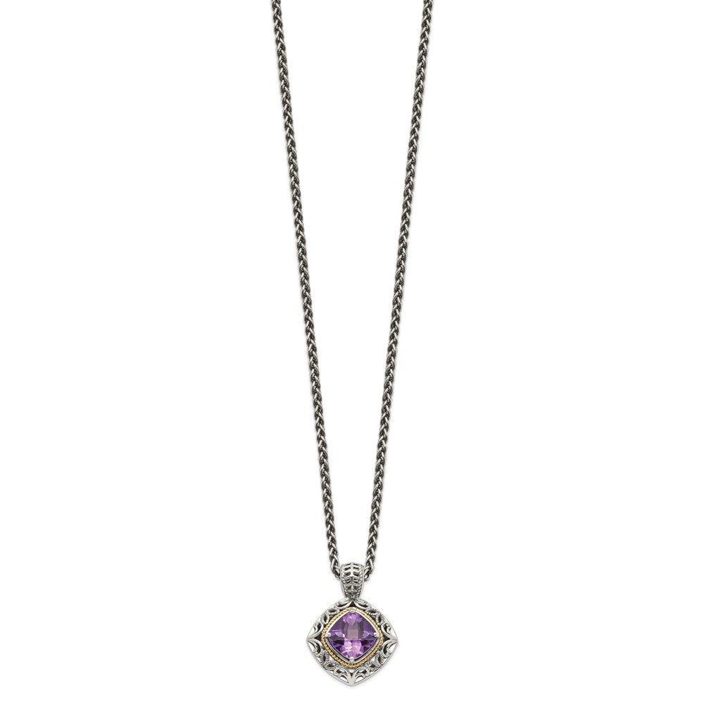 Shey Couture Sterling Silver with 14K Accent 18 Inch Antiqued Cushion Amethyst Necklace