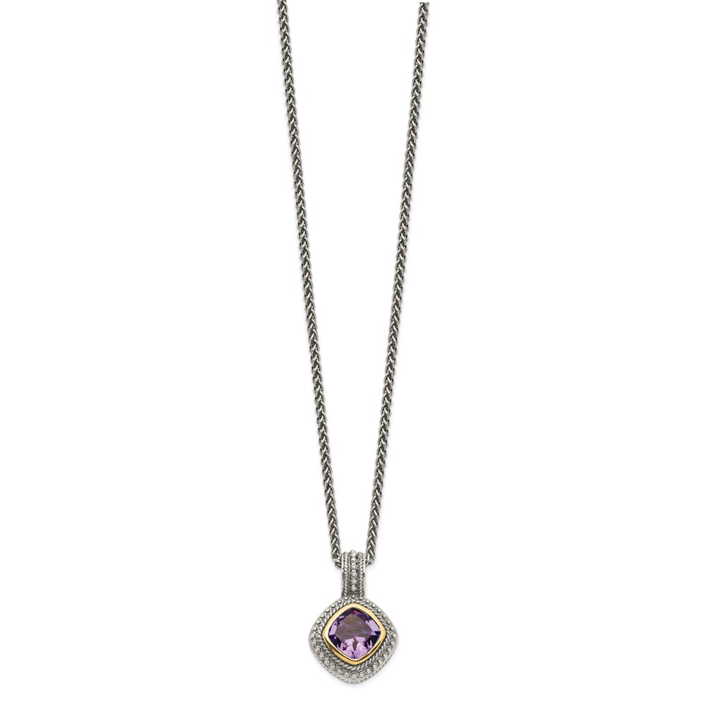 Shey Couture Sterling Silver with 14K Accent 18 Inch Antiqued Cushion Amethyst Necklace