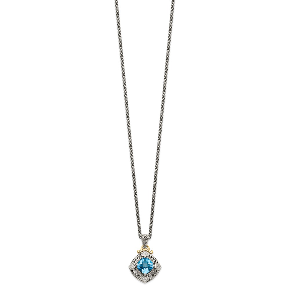 Shey Couture Sterling Silver with 14K Accent 18 Inch Antiqued Diamond and Cushion Blue Topaz Necklace