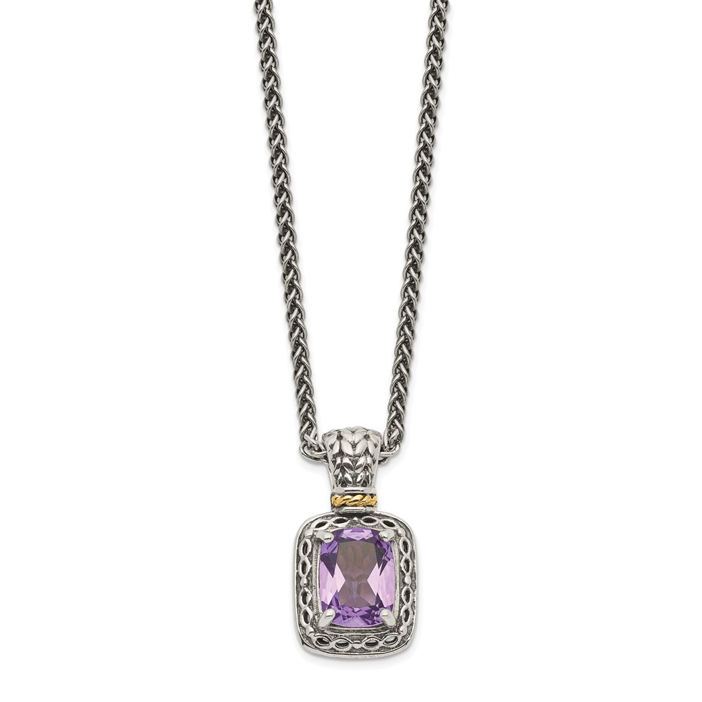Shey Couture Sterling Silver with 14K Accent 18 inch Antiqued Cushion Amethyst Necklace