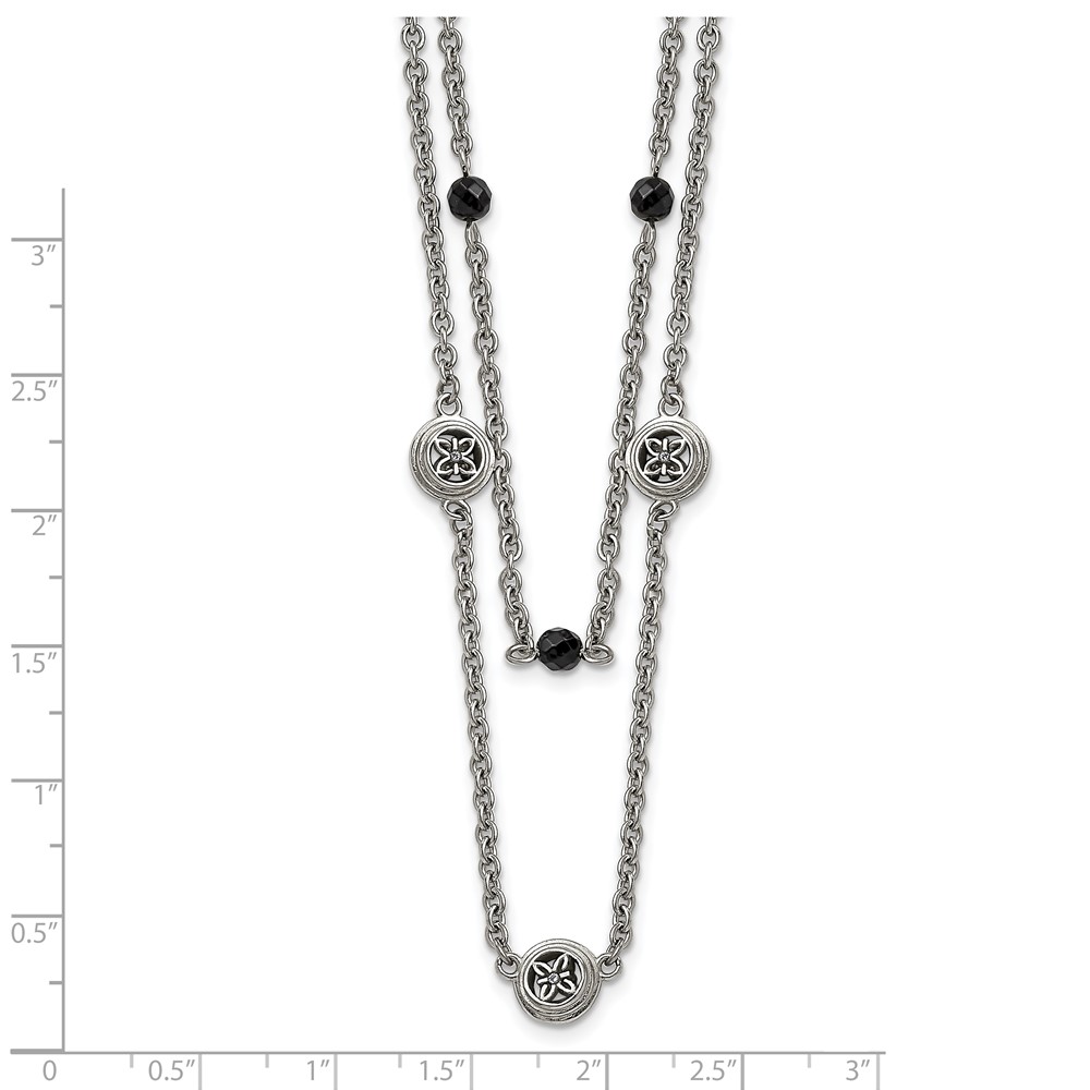 Stainless Steel Polished w/Black Onyx & Acrylic Beads w/2in ext Necklace