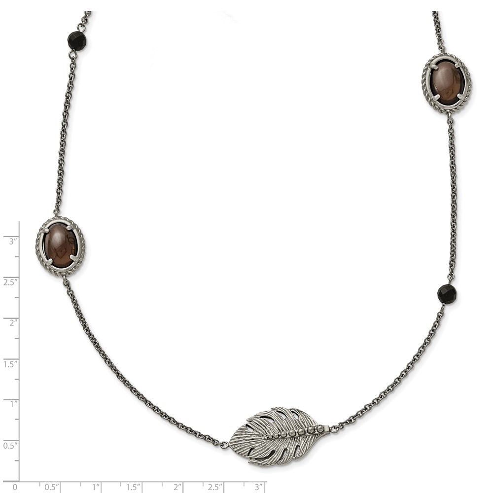 Stainless Steel Polished Leaf Smoky Quartz & Black Onyx w/2in ext Necklace