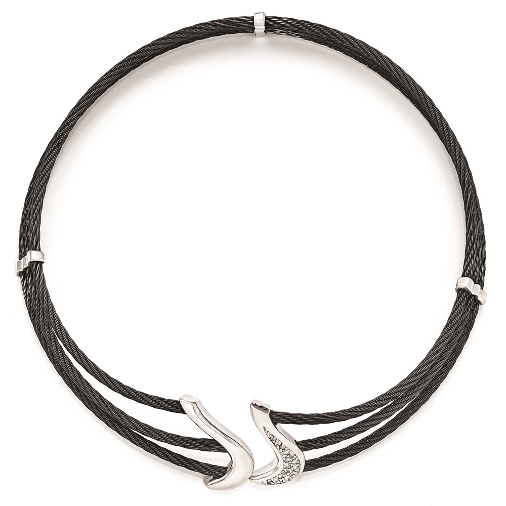 Edward Mirell Black Ti & Sterling Silver White Sapphire Cable Flex Collar