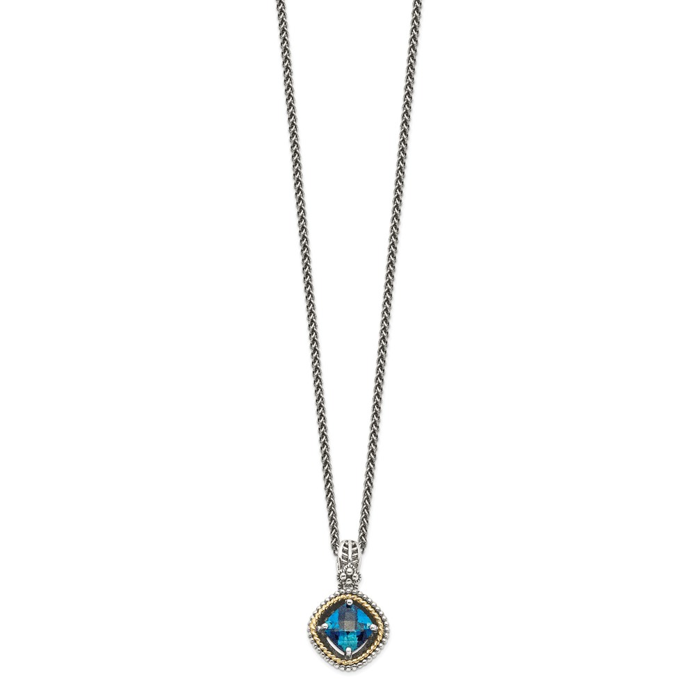 Shey Couture Sterling Silver with 14K Accent 18 Inch Antiqued CushionLondon Blue Topaz Necklace