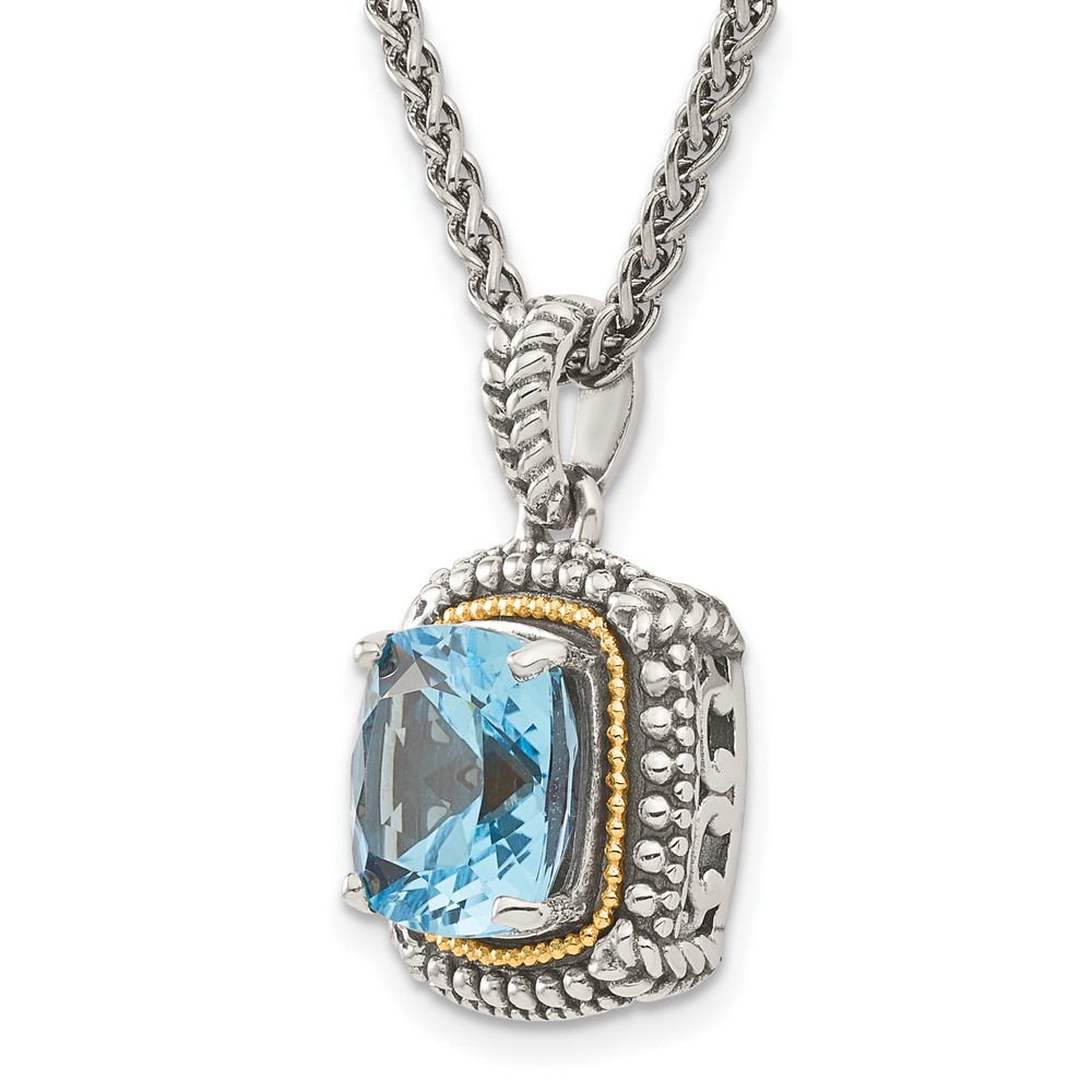 Shey Couture Sterling Silver with 14K Accent 18 Inch Antiqued Cushion Light Swiss Blue Topaz Necklace