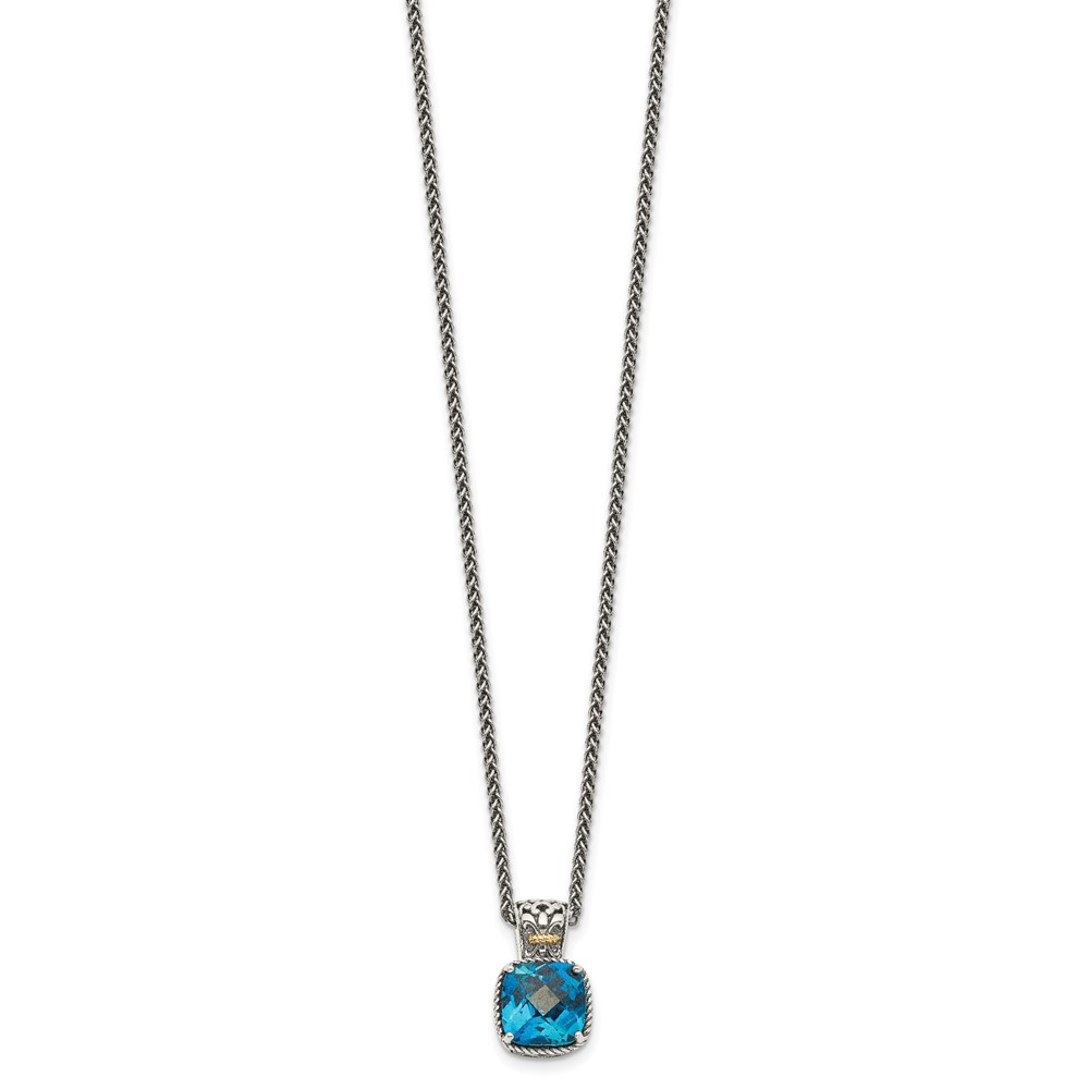 Shey Couture Sterling Silver with 14K Accent 18 Inch Antiqued Cushion London Blue Topaz Necklace