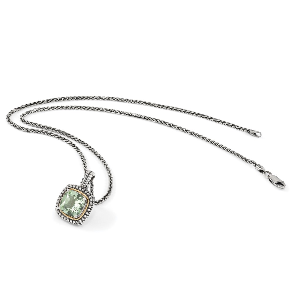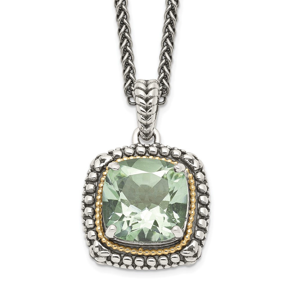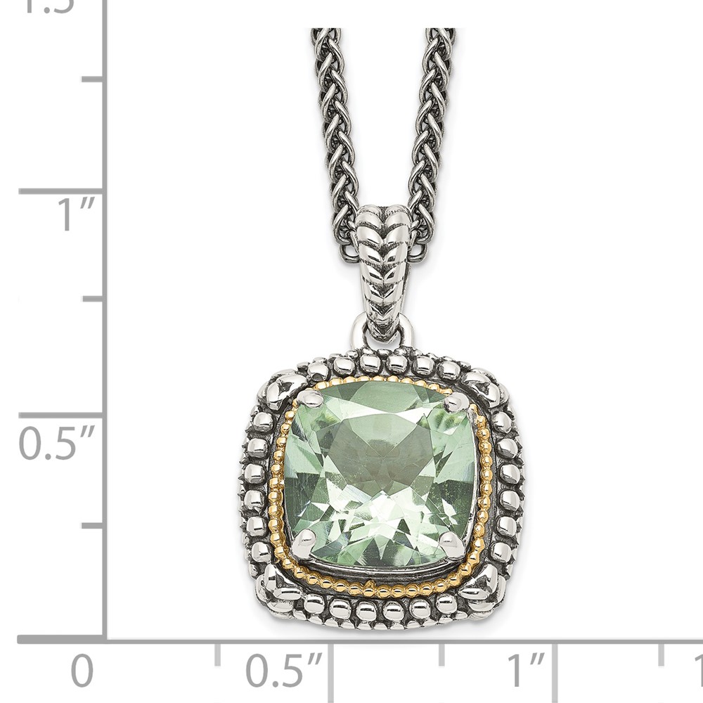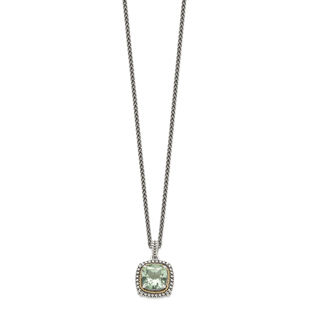 Shey Couture Sterling Silver with 14K Accent 18 Inch Antiqued Cushion Green Quartz Necklace