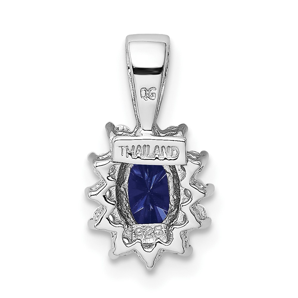 Sterling Silver Rhodium-plated CZ/Lab Cr Sapphire Pendant