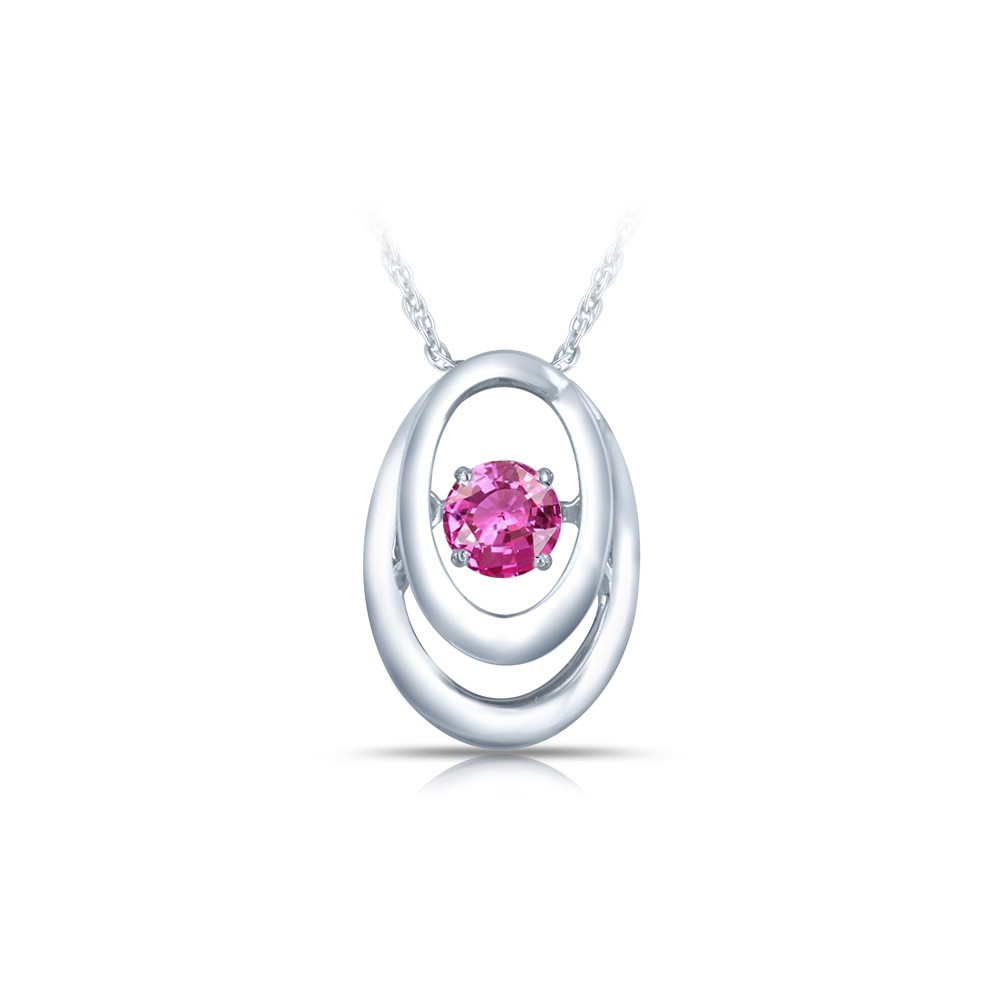 SS Pendant with Pink Synthetic sapp 1=1/4 ctw W/chain