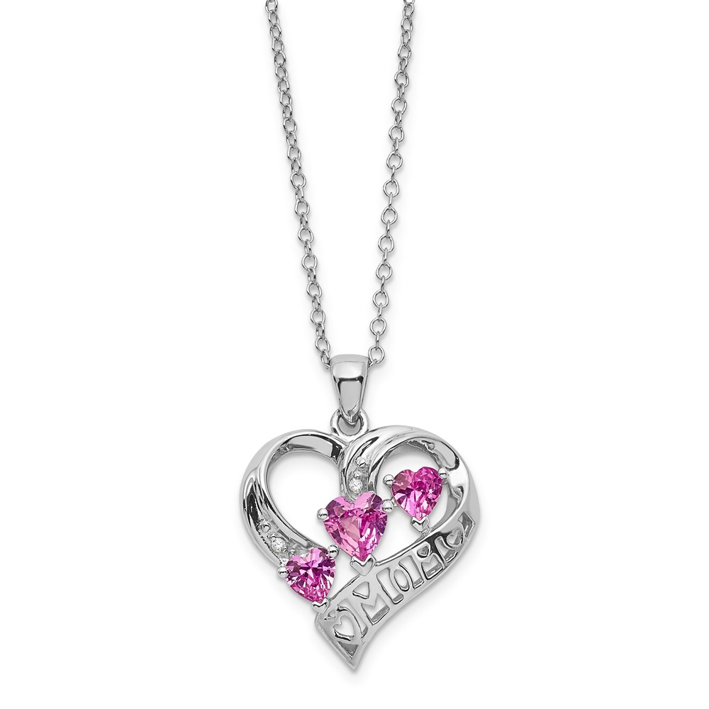 SS Created Pink Sapphire & Diamond Pend