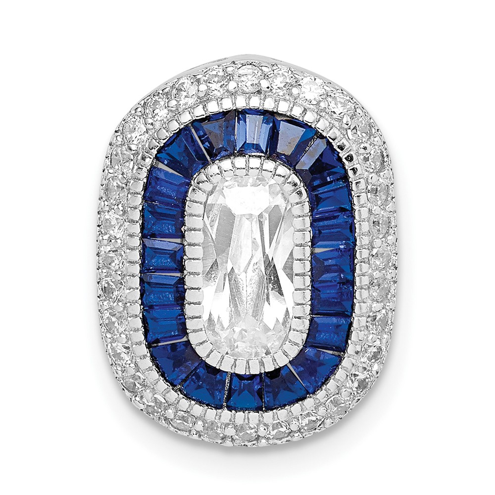 Sterling Silver Rhodium-plated CZ & Synthetic Blue Spinel Chain Slide