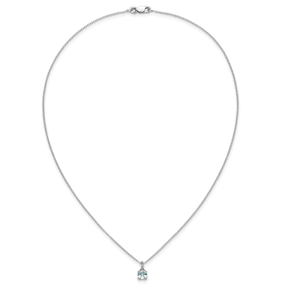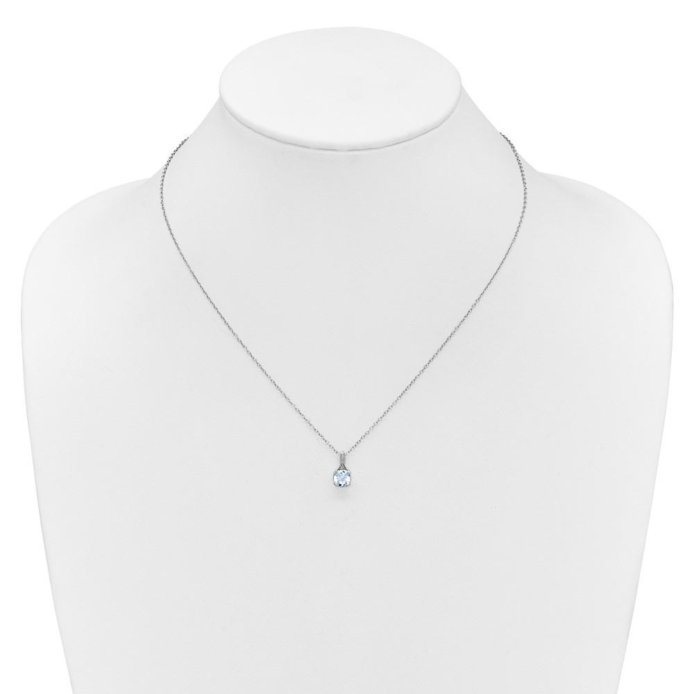 Sterling Silver Aquamarine Diamond Pendant w/Chain 6mm AQ