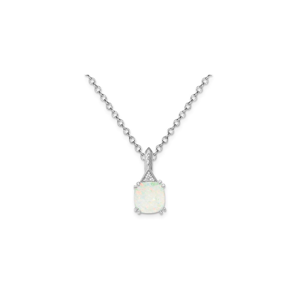 Sterling Silver Opal Diamond Pendant w/Chain 6mm Opal
