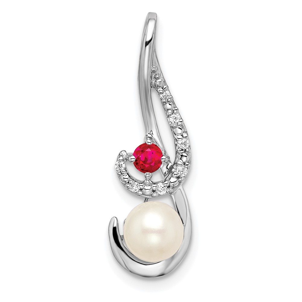 14k White Gold 6-7mm Round White Freshwater Cultured Pearl/Ruby/Diamond Slide Fits up to 4mm Fancy Omega Only