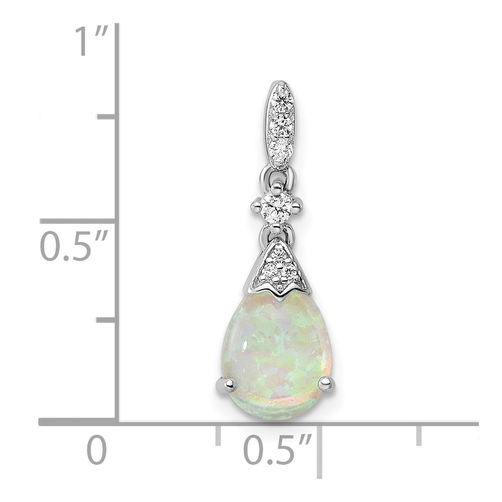 Sterling Silver Rhodium-plated Polished CZ and Synthetic Opal Pendant
