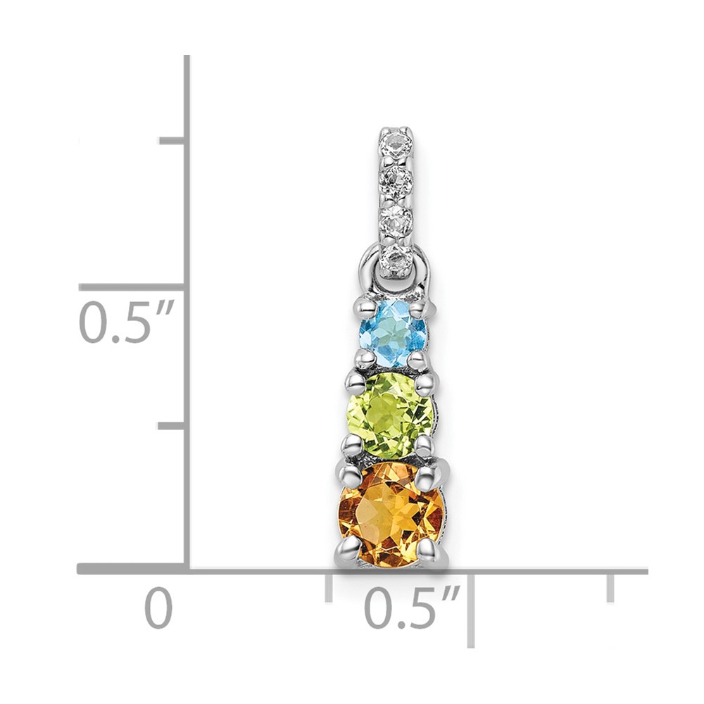 Sterling Silver RH-plated .85t.w. PE/CI/LSBT/WT 3-Stone Pendant