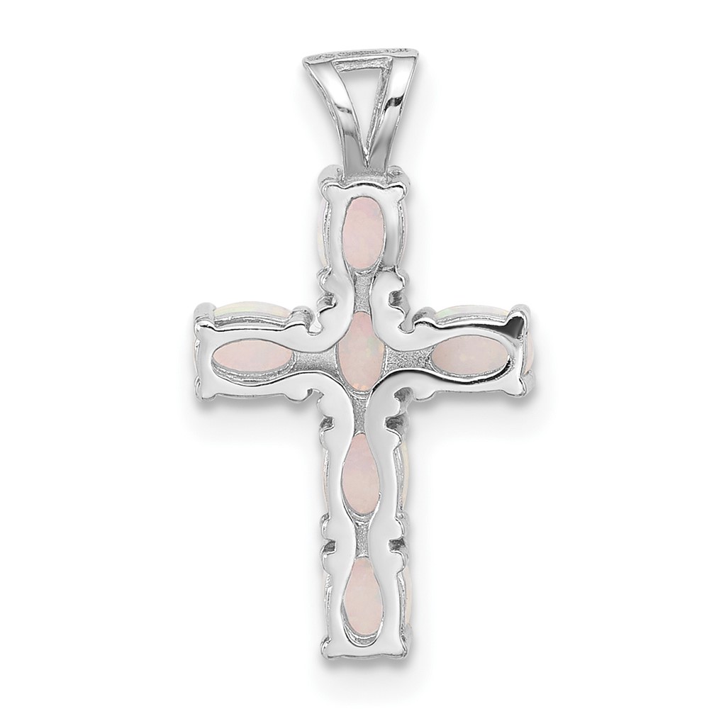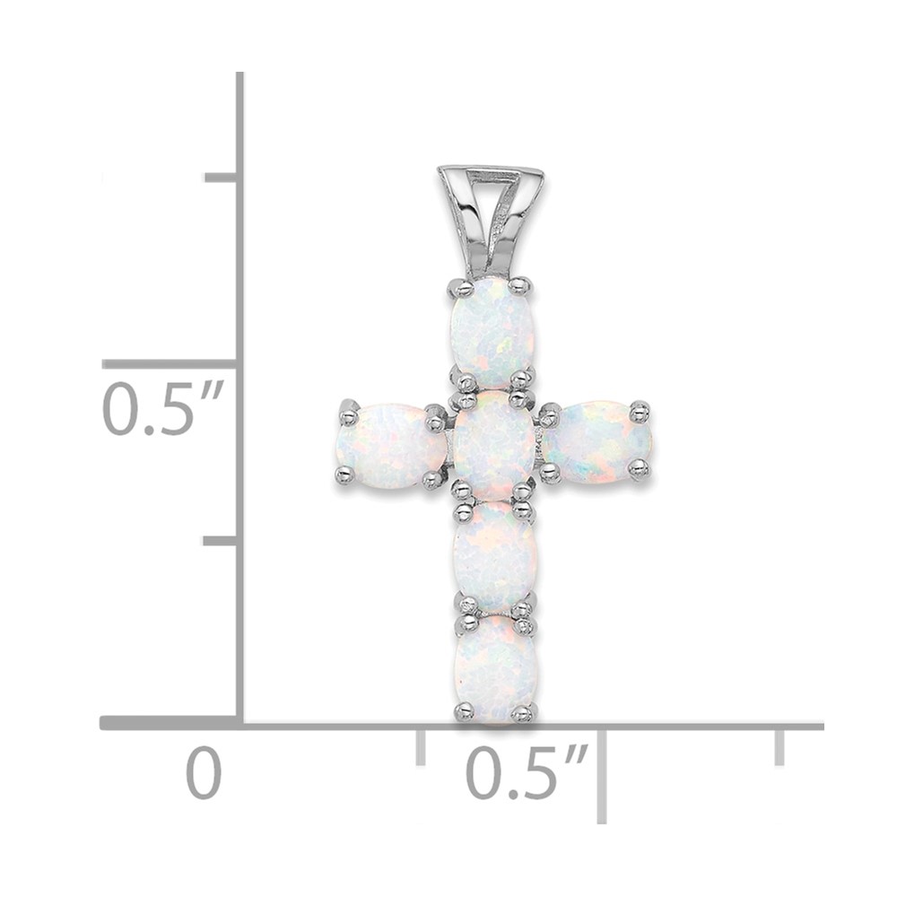 Sterling Silver Flash Platinum-plated Created Opal Cross Pendant