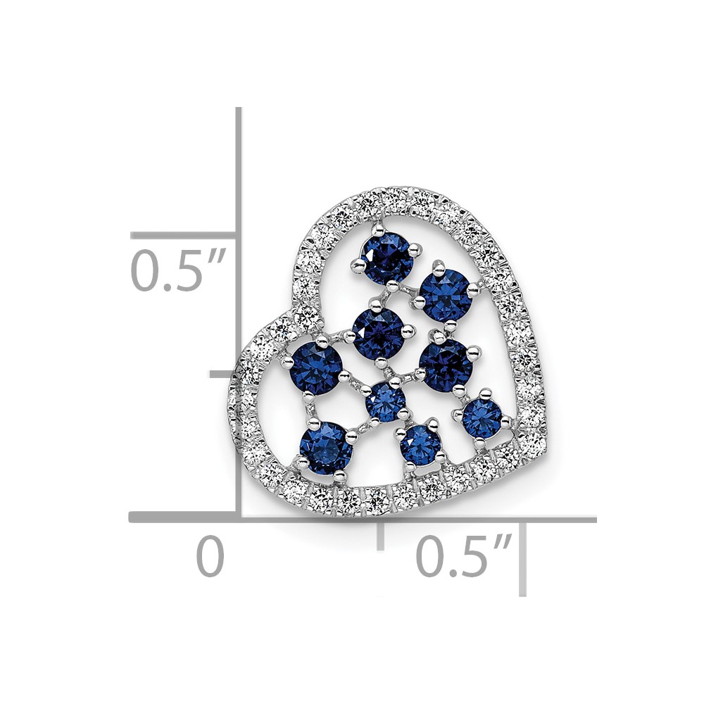 14K White Gold Polished Diamond and Sapphire Heart Chain Slide