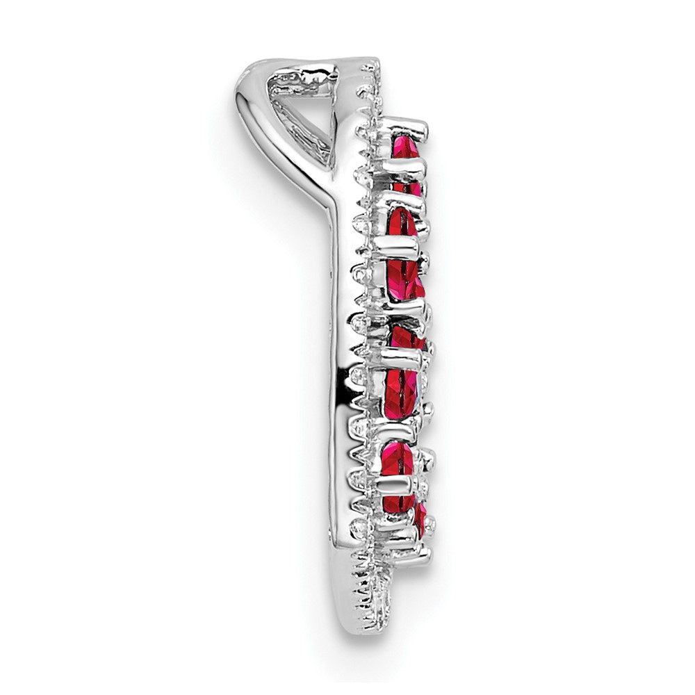 14K White Gold Polished Diamond and Ruby Heart Chain Slide