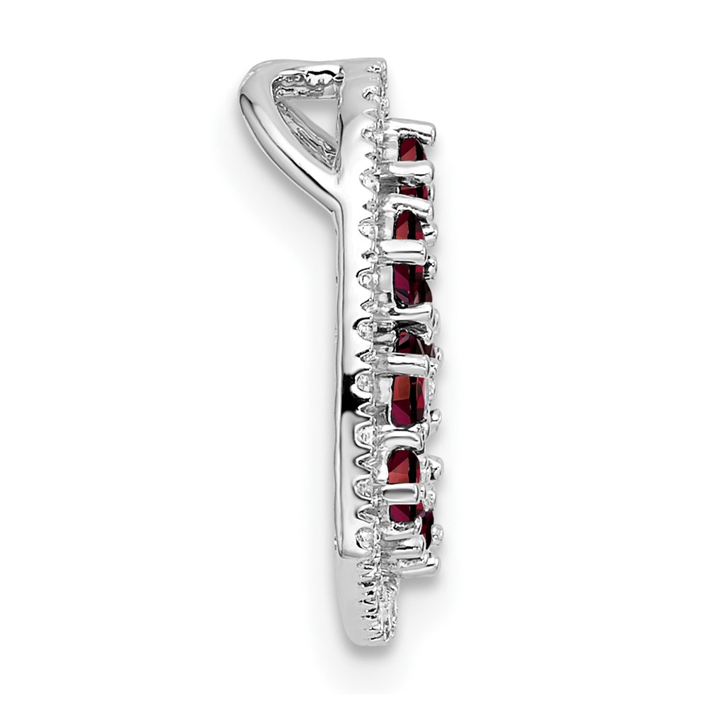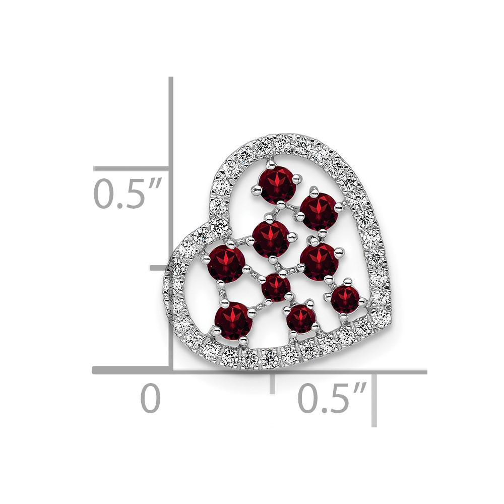 14K White Gold Polished Diamond and Garnet Heart Chain Slide