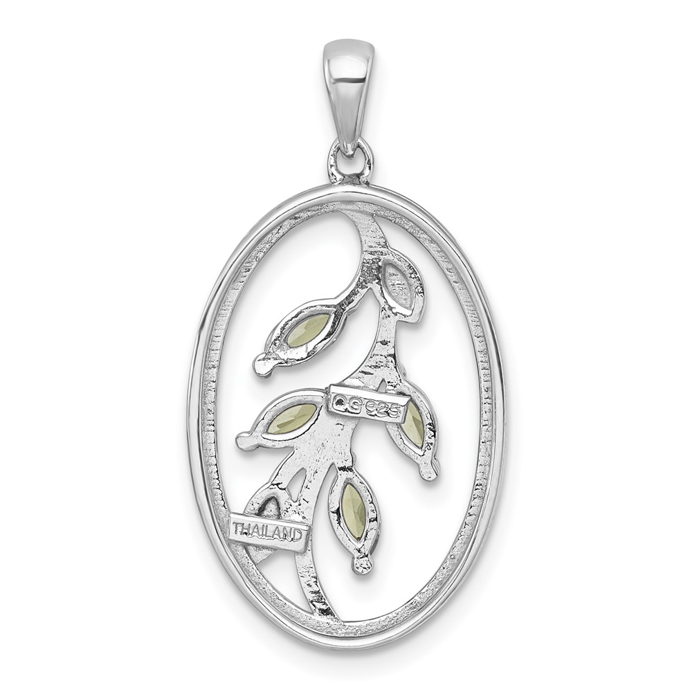 Sterling Silver Rhodium-plated Polished Peridot Leaves Twisted Oval Pendant