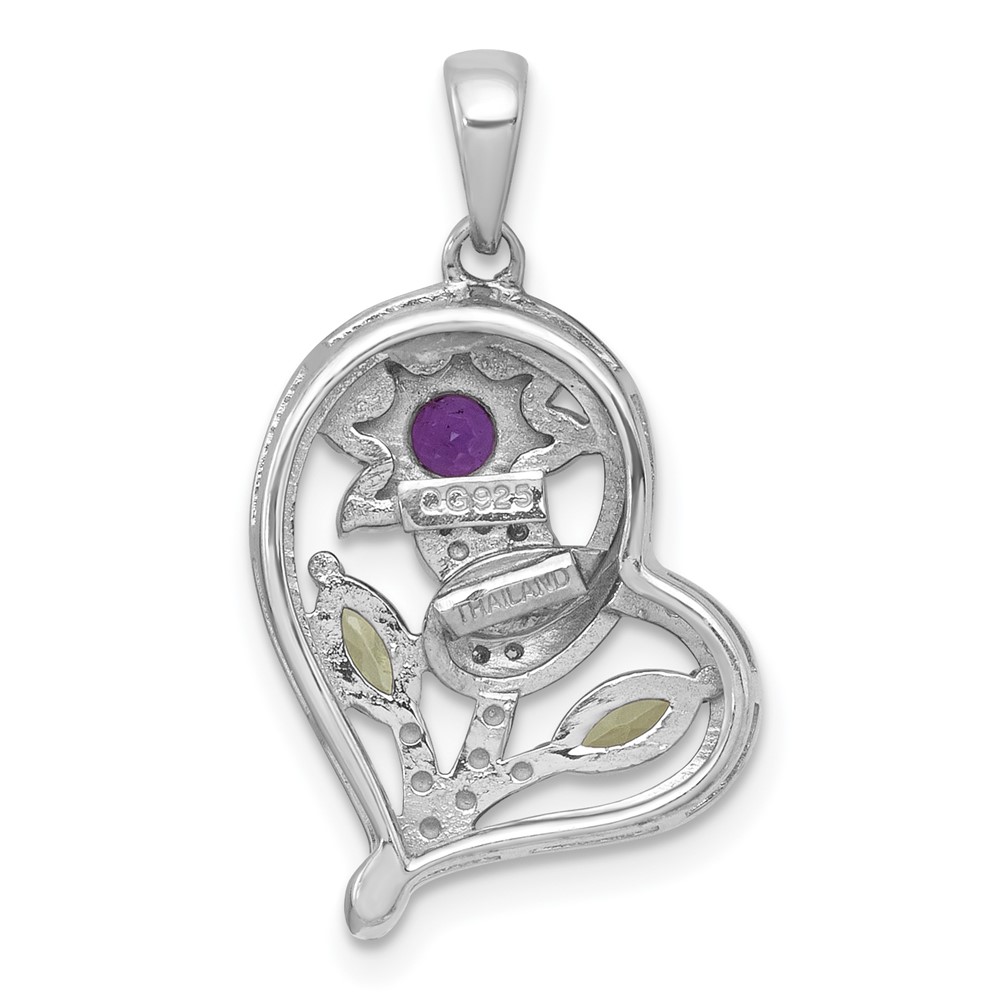 "Sterling Silver Rhodium-plated Polished Amethyst, Peridot and White Topaz Flower in Heart Pendant"
