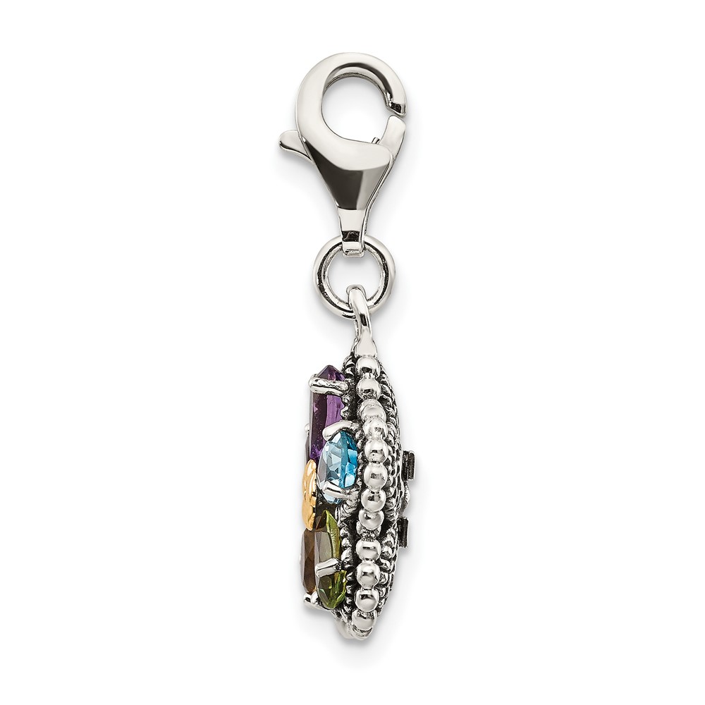 Shey Couture Sterling Silver with 14K Accent Antiqued Pear Shaped Amethyst Citrine Blue Topaz Peridot and Garnet Multicolored Gemstone Flower with Lobster Clasp Charm