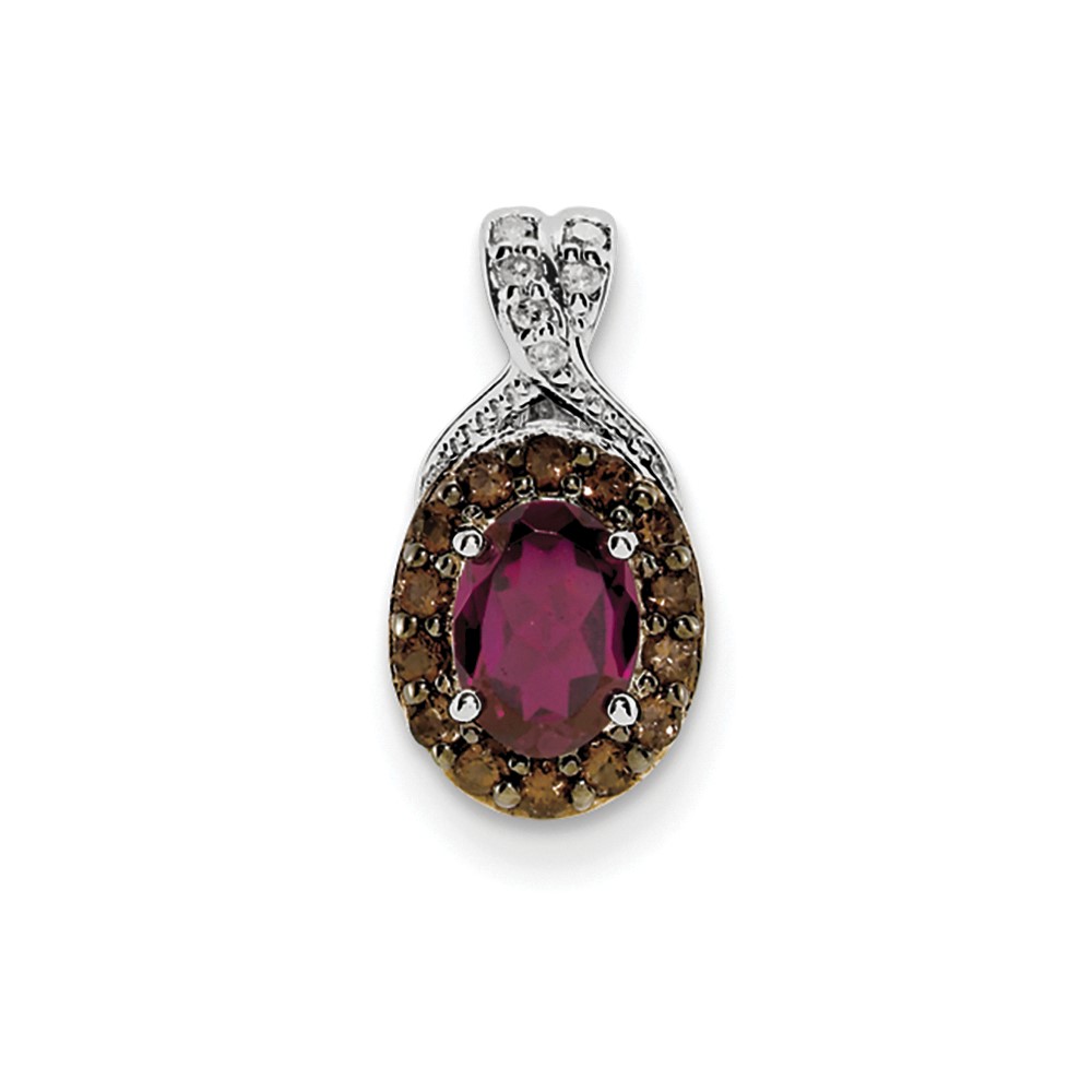 Sterling Silver Rhodium Rhodolite Garnet & Smoky Qrtz & Diam. Pendant