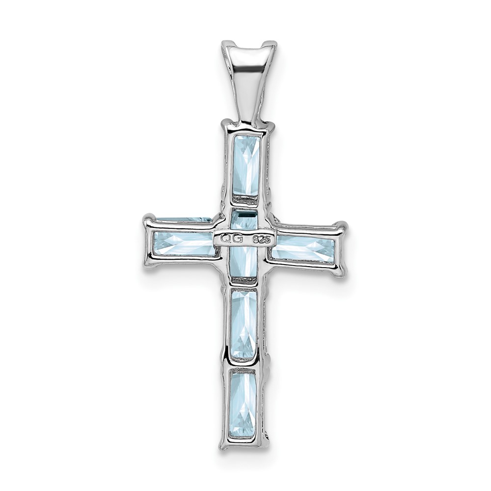 Sterling Silver Rhodium Plated Aquamarine Cross Pendant