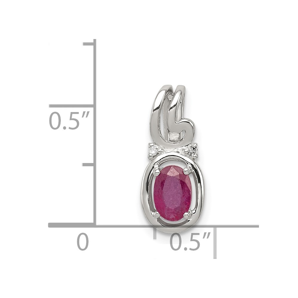 Sterling Silver Rhodium Plated Diamond & Ruby Oval Pendant
