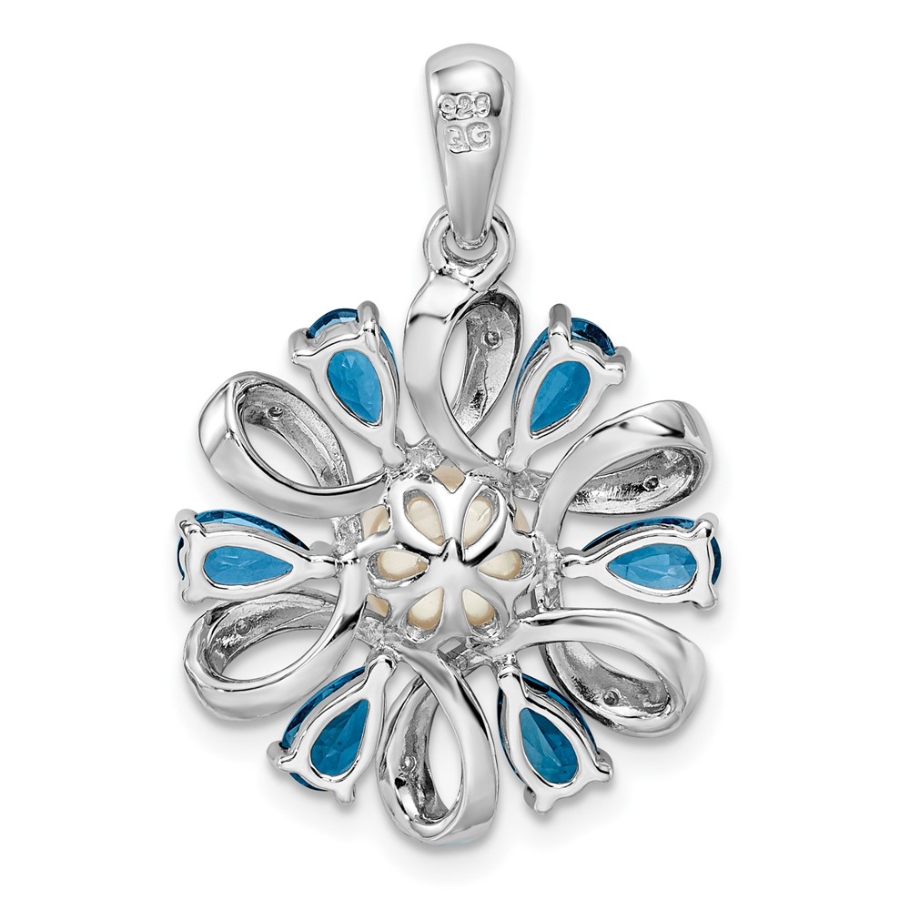Sterling Silver Rhodium Plated Dia. and London BT Flower Pendant
