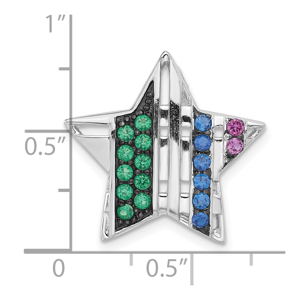 Sterling Silver w/ Black Rhodium Synthetic Stones Star Chain Slide