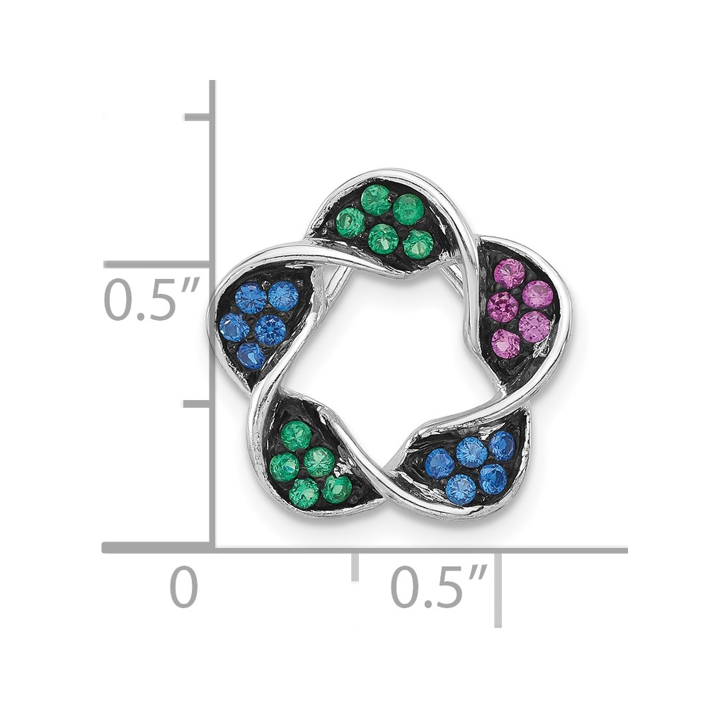 Sterling Silver w/ Black Rhodium Synthetic Stones Flower Chain Slide