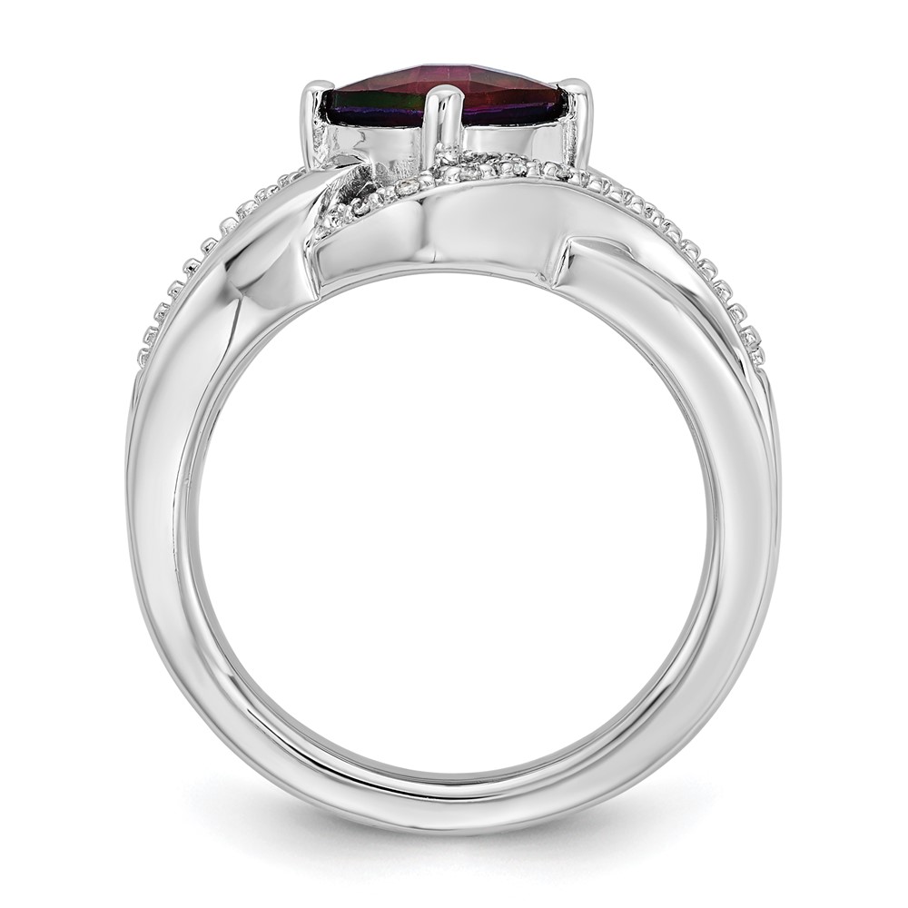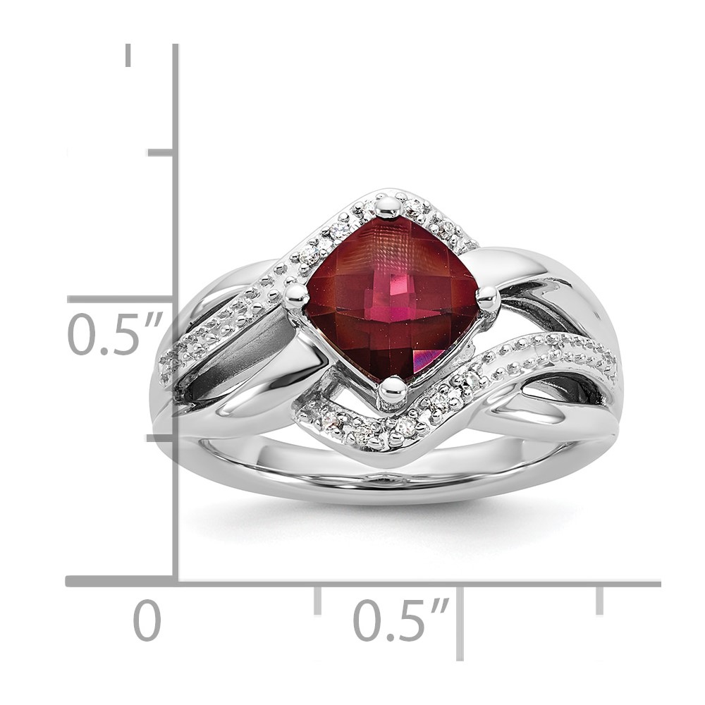 SS 7X7 RED CZ and Diamond Ring