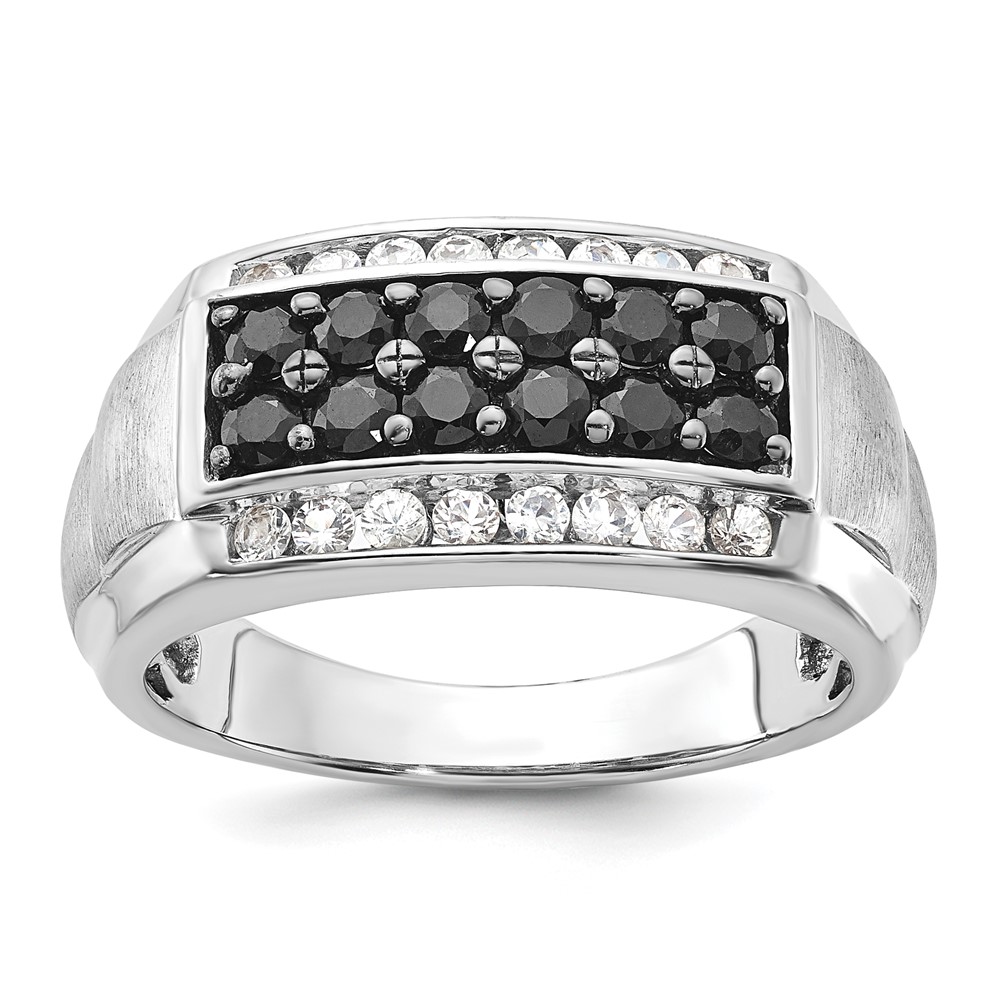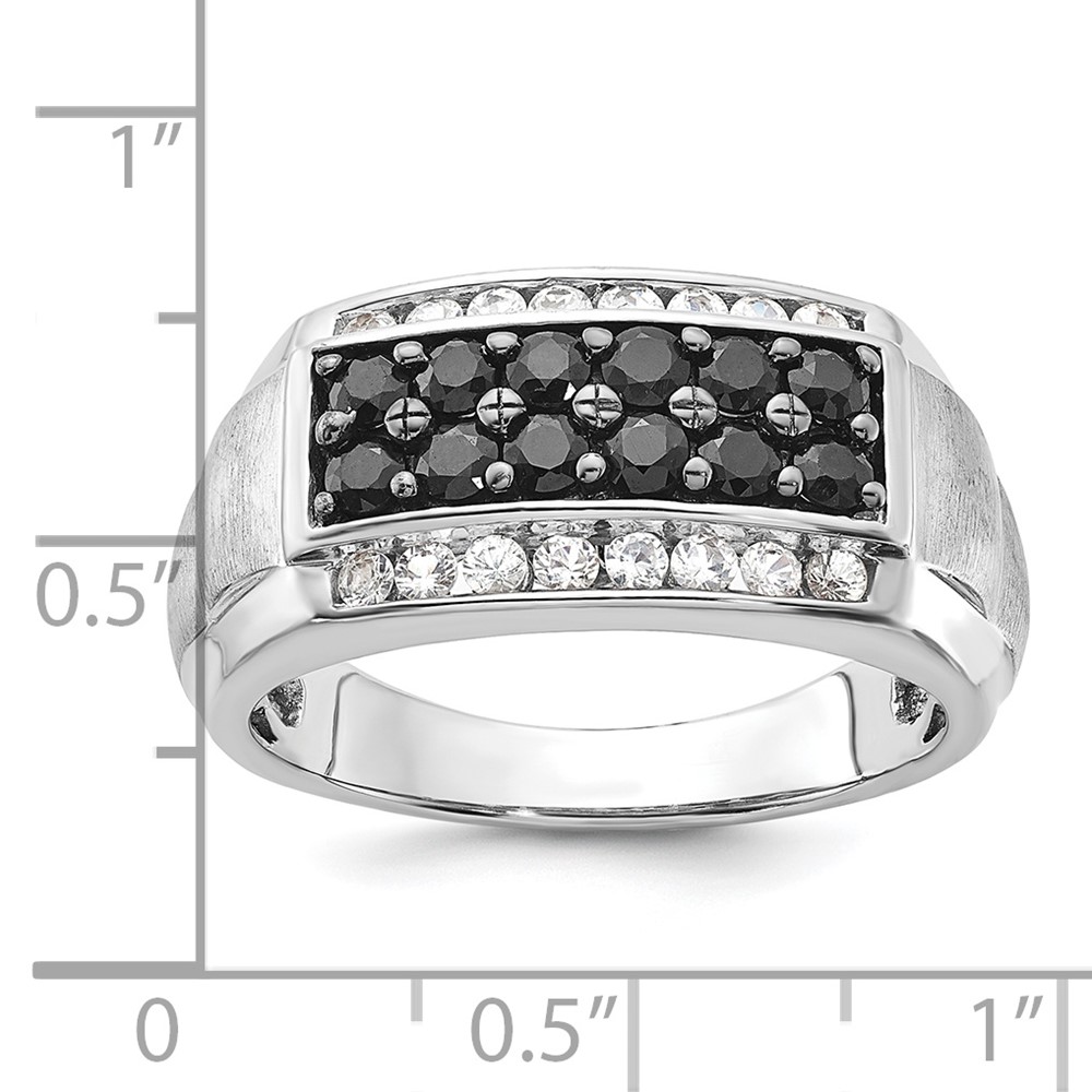 Sterling Silver Polished & Brushed Black and White Sapphire Ring