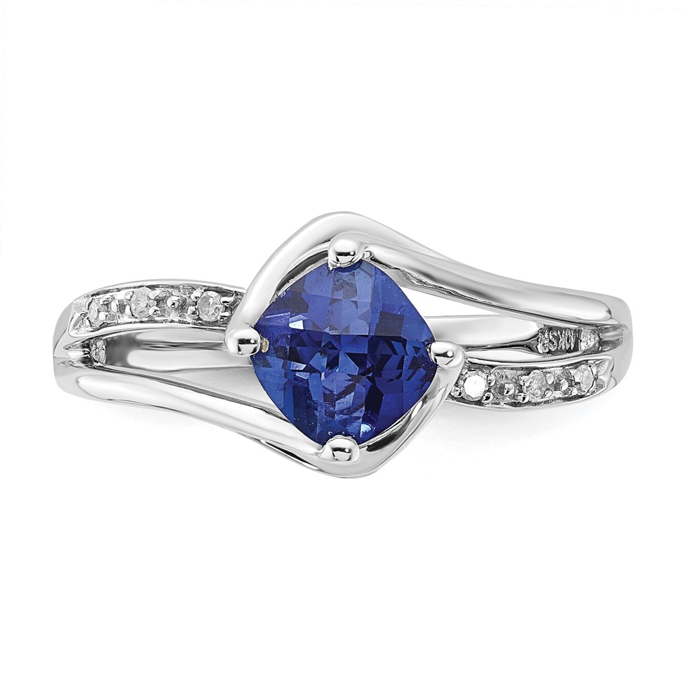Sterling Silver Created Sapphire & Diamond Ring