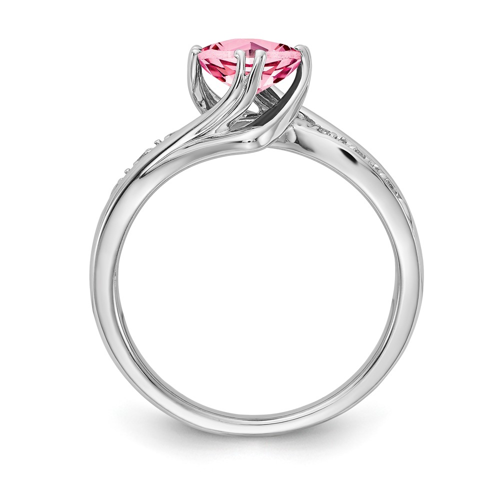 Sterling Silver Created Pink Sapphire and Diamond Ring