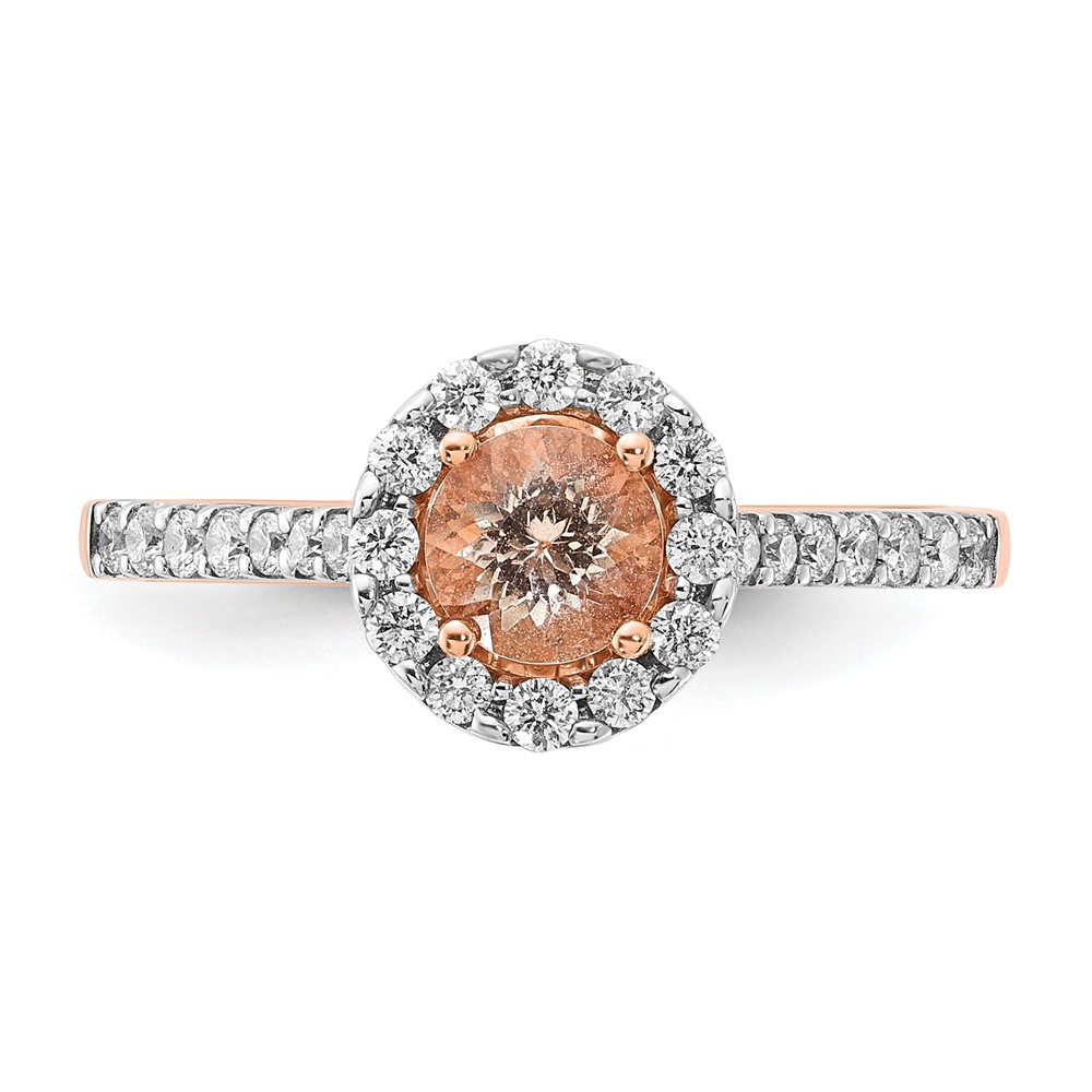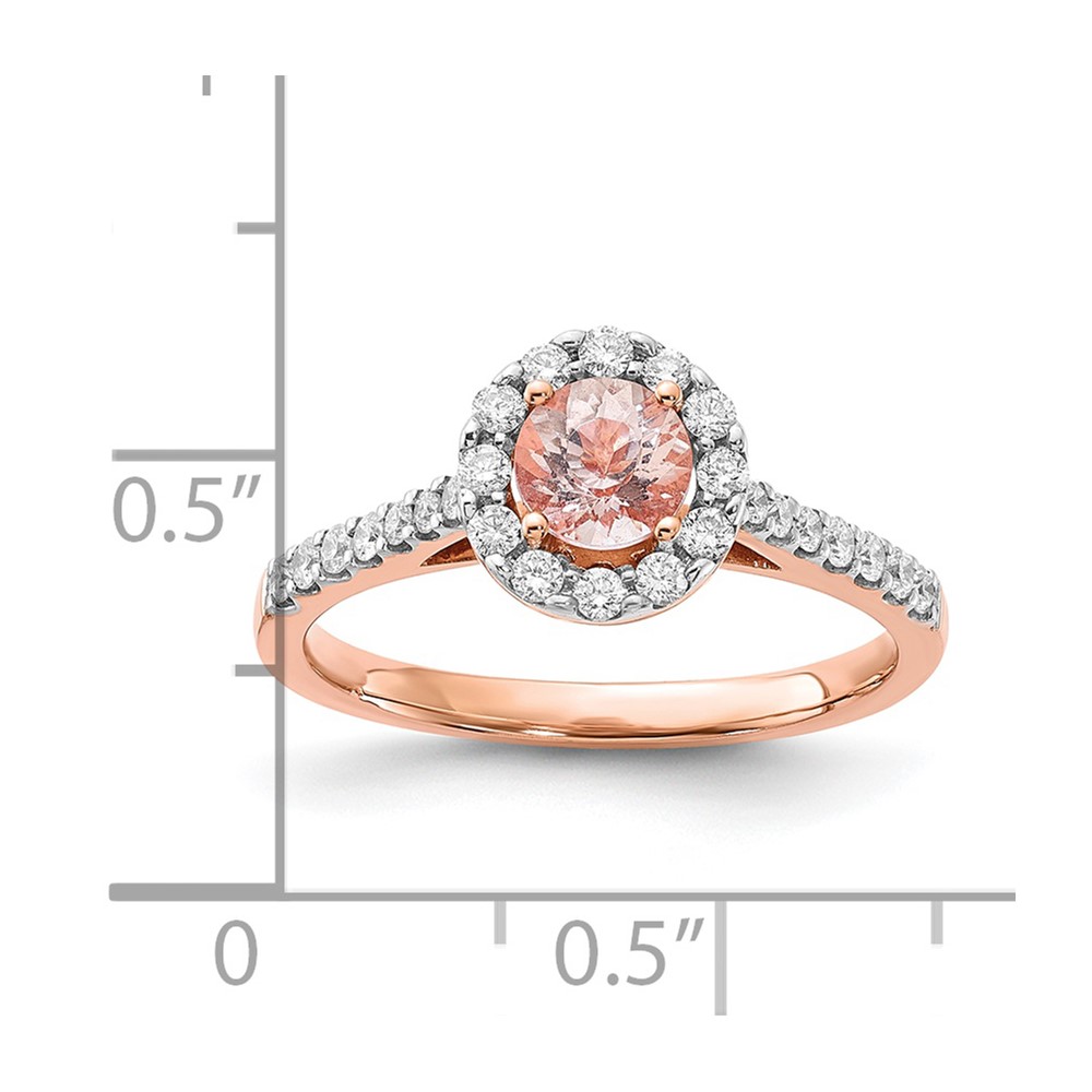 14k Rose Gold Round Morganite Center Diamond Halo Engagement Ring