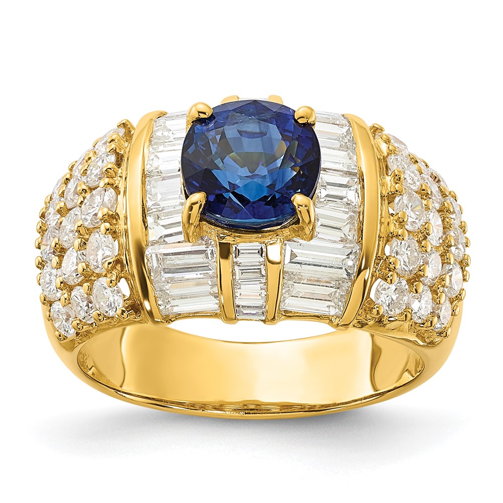18k Yellow Gold Polished Fancy Sapphire & Diamond Ring