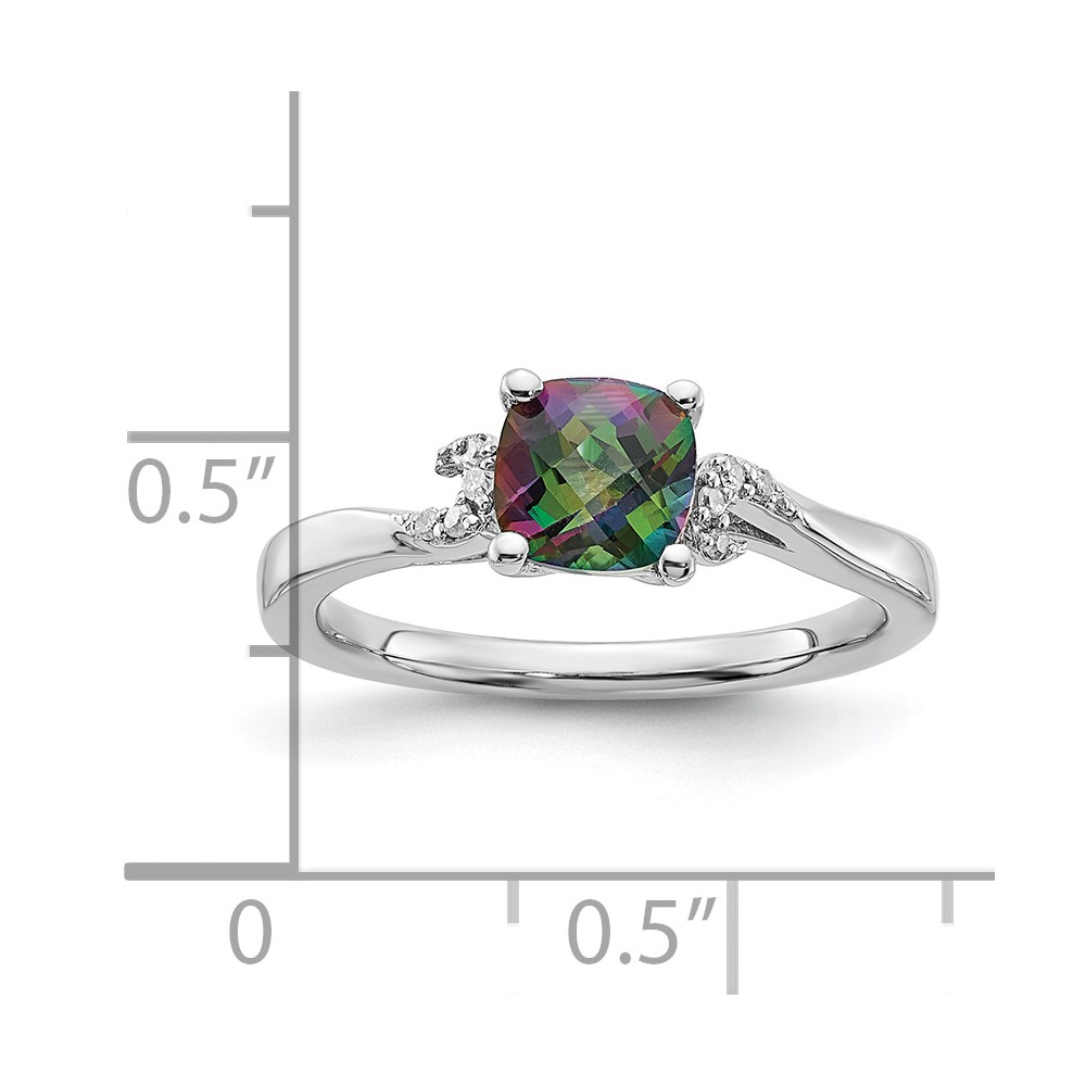 Sterling Silver Antique Checkboard Mystic Fire and Diamond Ring