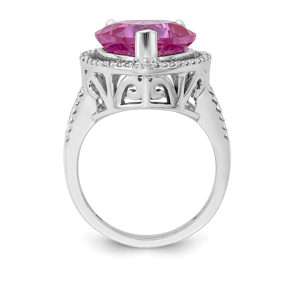 Sterling Silver Pink Sapphire & CZ Heart Ring
