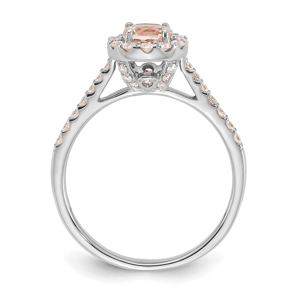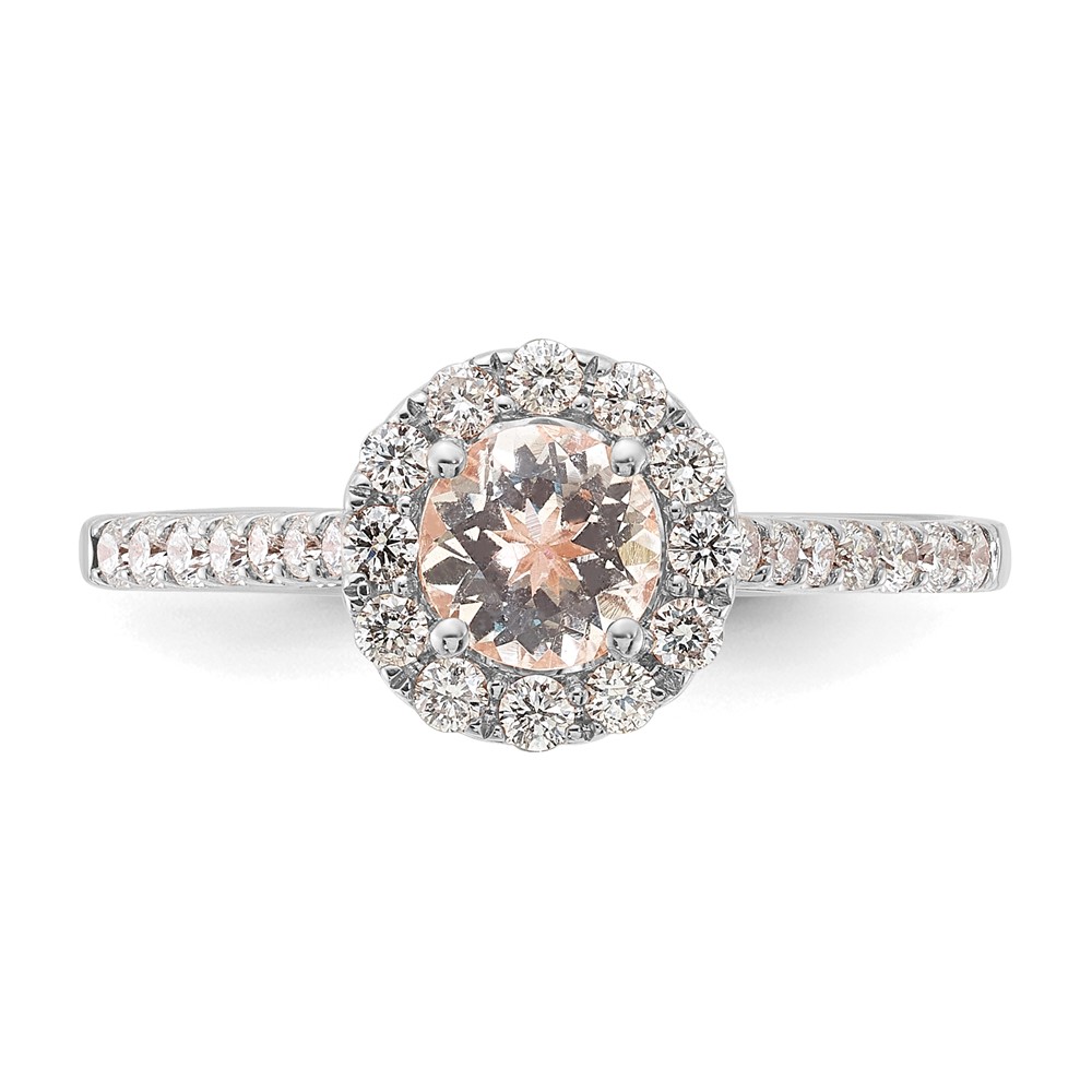 14k White Gold Round Morganite Center Diamond Halo Engagement Ring