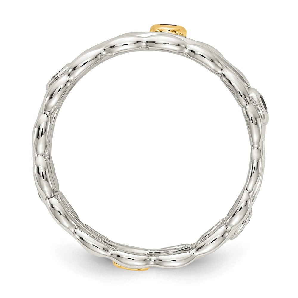 Shey Couture Sterling Silver Rhodium-plated with 14K Accent Round Bezel Amethyst Blue Topaz/Citrine/Garnet/Peridot and Smoky Quartz Ring