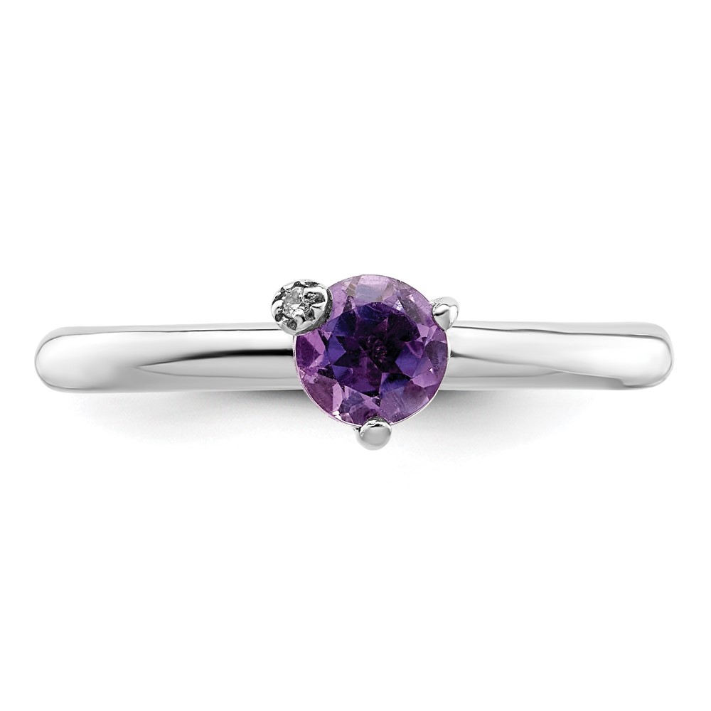 Sterling Silver Rhodium-plated Polished Amethyst & White Topaz Ring