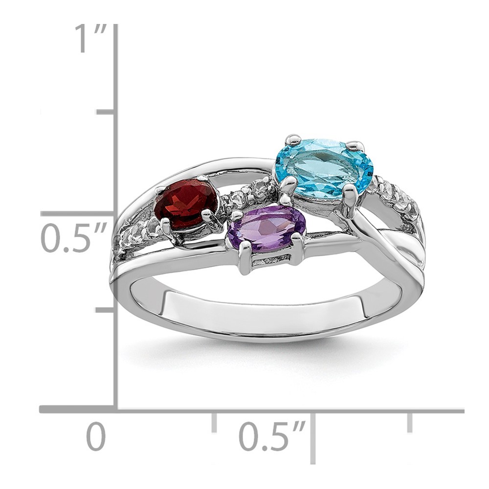 Sterling Silver RH-plated 1.15t.w. BT/AM/GA/WT Oval Ring