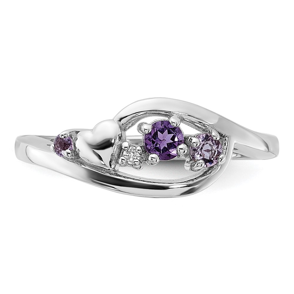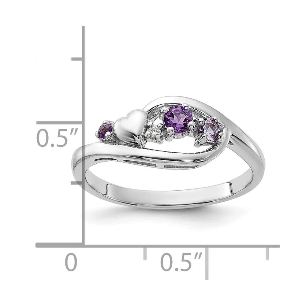 SS Rhodium-plated Amethyst Pink Quartz and CZ with Heart Ring