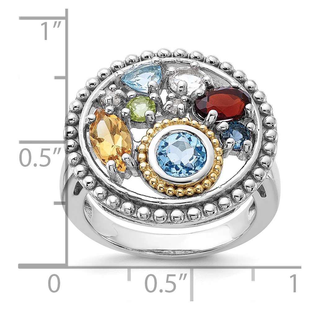 Shey Couture Sterling Silver Rh-plated w/14k Accent .47Citrine/.93Swiss Blue Topaz/.15Light Blue Topaz/.13Peridot/.67Garnet/.39Wht Topaz Ring