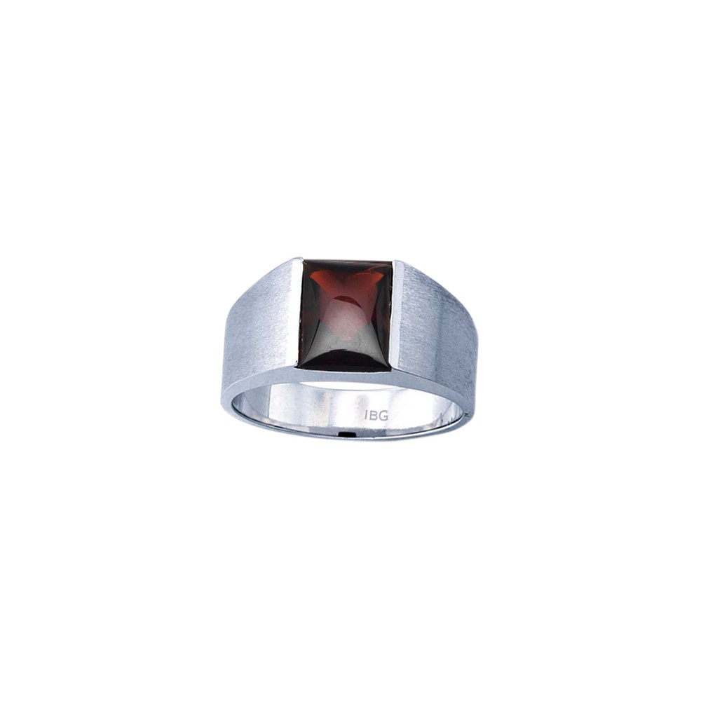 Men's White Gold Garnet Ring with Soft Satin Finish