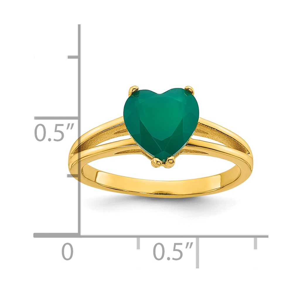 Sterling Silver Gold-tone Polished Green Chalcedony Heart Size 8 Ring